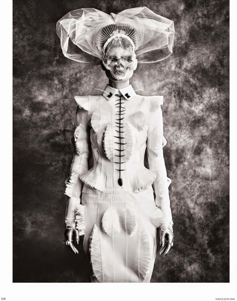 Check out this avantgarde shoot for Vogue Germany, which appeared on the occasion of Frida Kahlo's 60th death anniversary. The editorial is about the legendary Mexican painter, about a life between beauty and pain. Enjoy the artistry that Daniele & Iango captured with their photos. The American model, Guinevere Van Seenus styled by Patti Wilson.